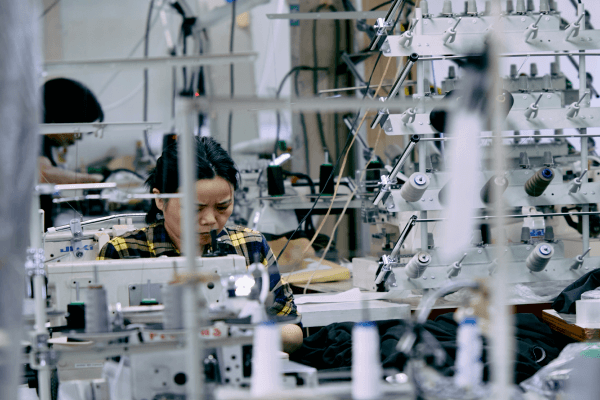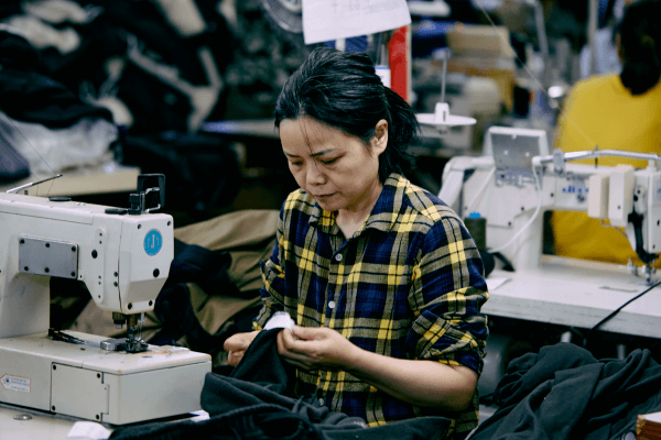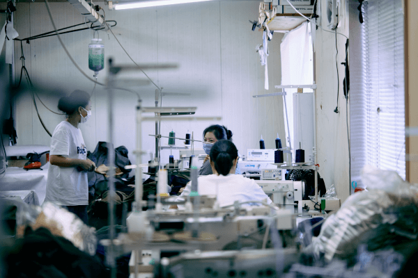 生地の裁断から縫製、検品、梱包まで、一貫した品質管理のもとで製品を仕上げます。